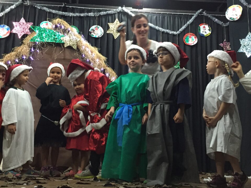 As crianças se reuniram em um emocionante espetáculo para interpretar músicas de Natal, mesclando as culturas brasileira e inglesa.